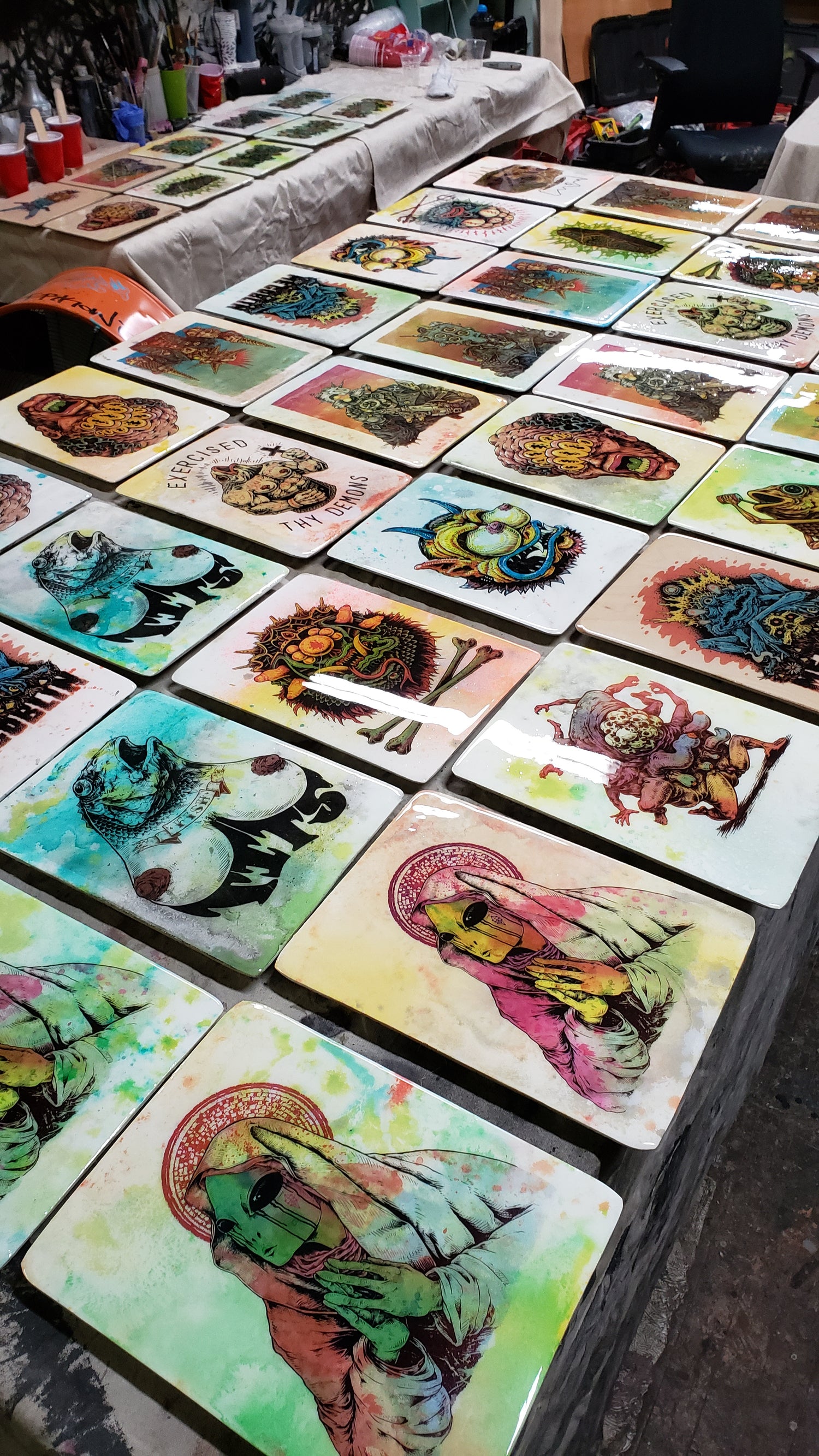 A range of 3D work from resin cast, 3D print, painted custom...